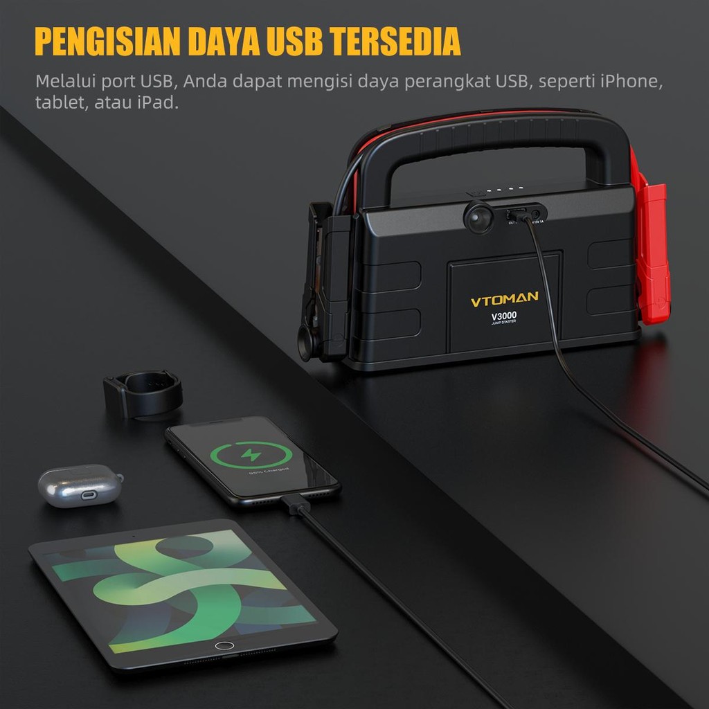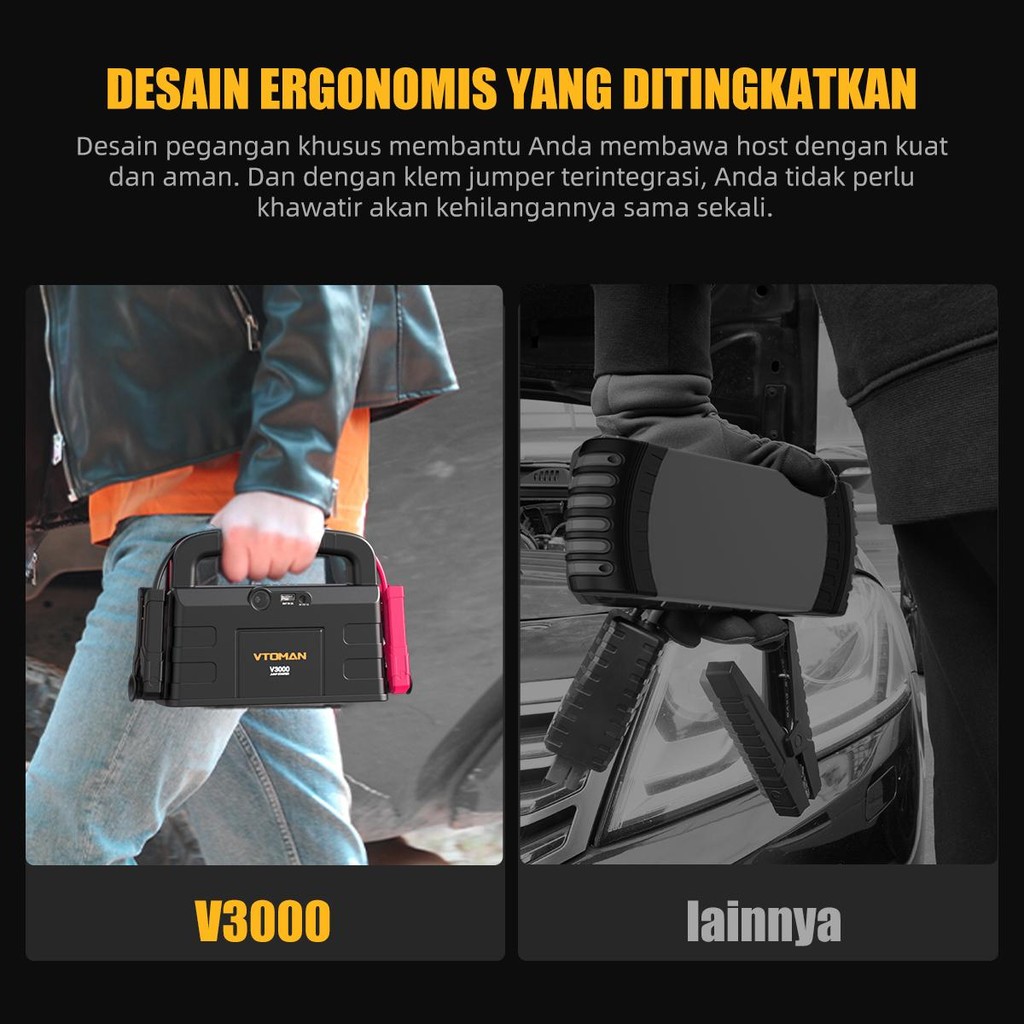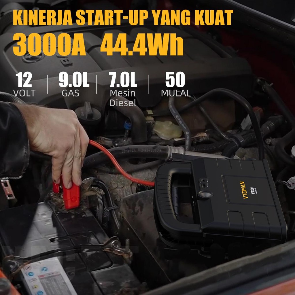 VTOMAN V3000 Jumper Aki 12000mAh 12V Powerbank Jumper Aki Mobil Dan Motor Car Jump Starter Multifungsi Power Bank Mobil
