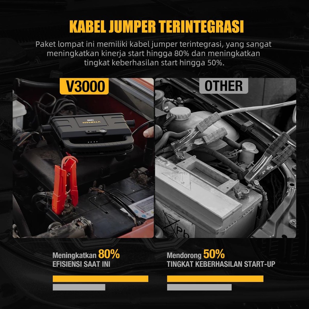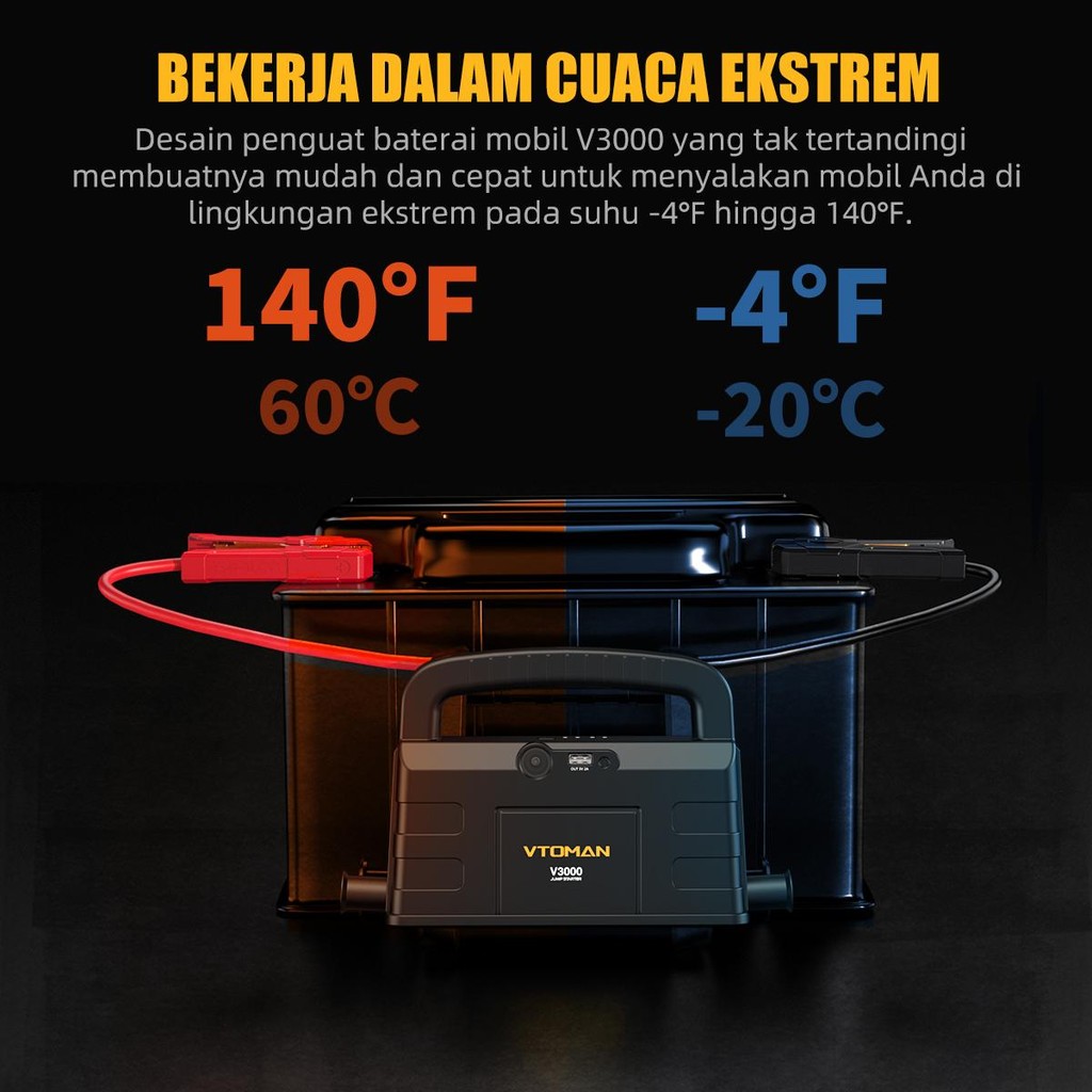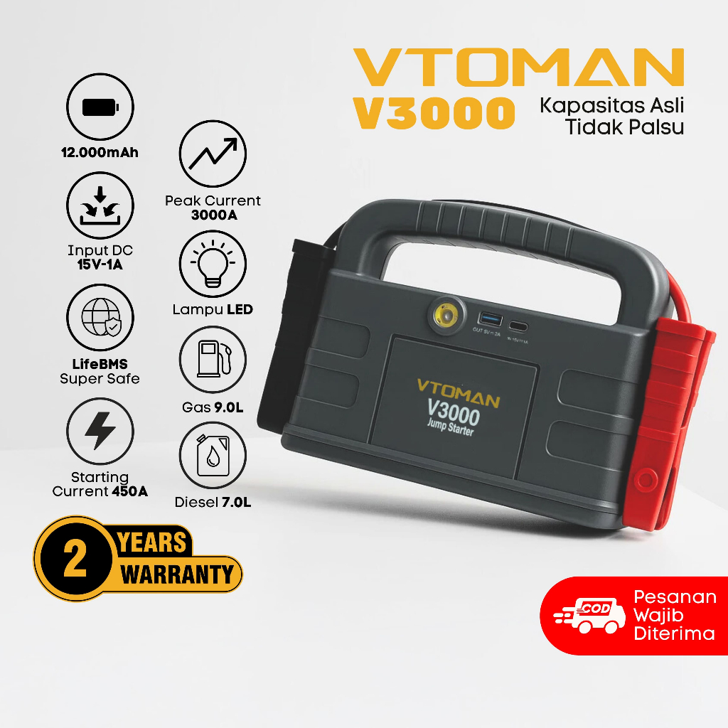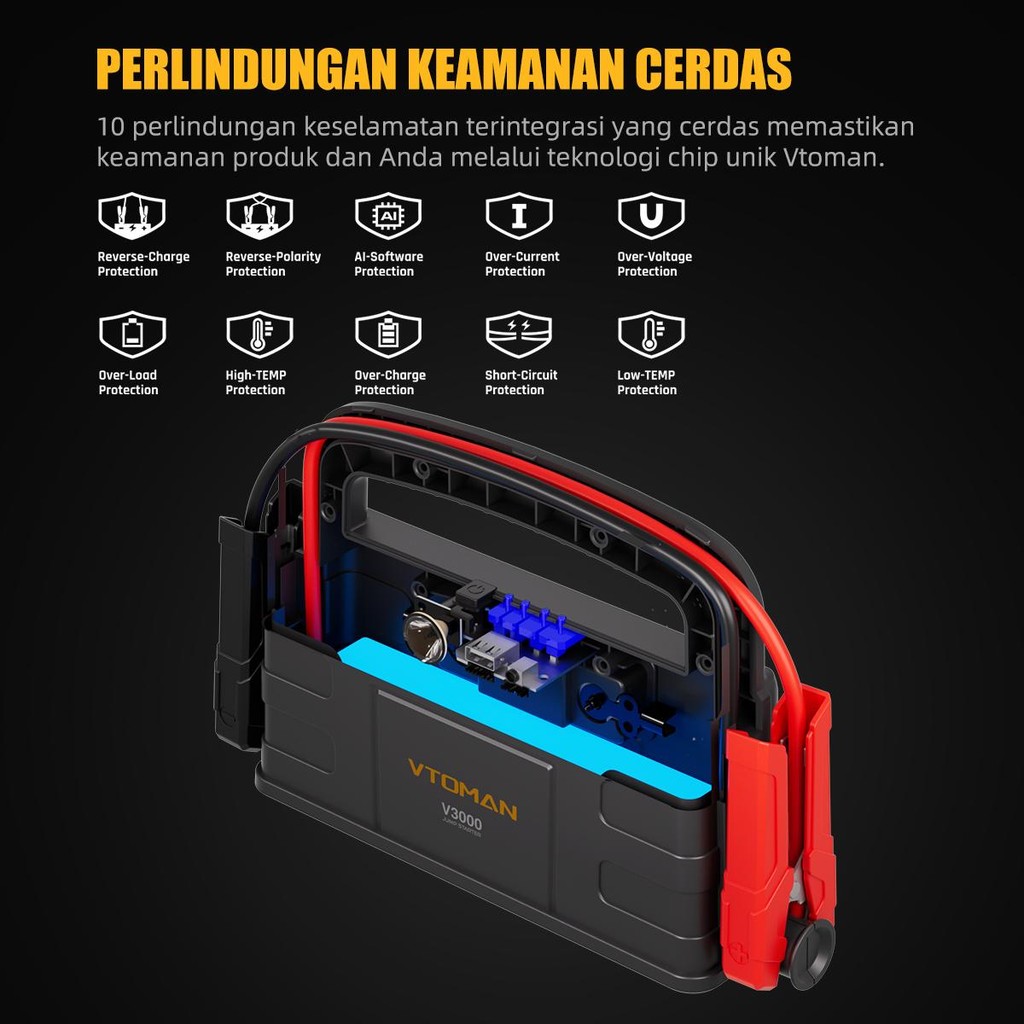 VTOMAN V3000 Jumper Aki 12000mAh 12V Powerbank Jumper Aki Mobil Dan Motor Car Jump Starter Multifungsi Power Bank Mobil