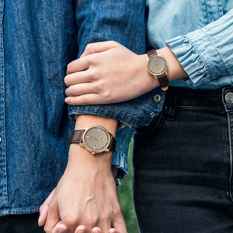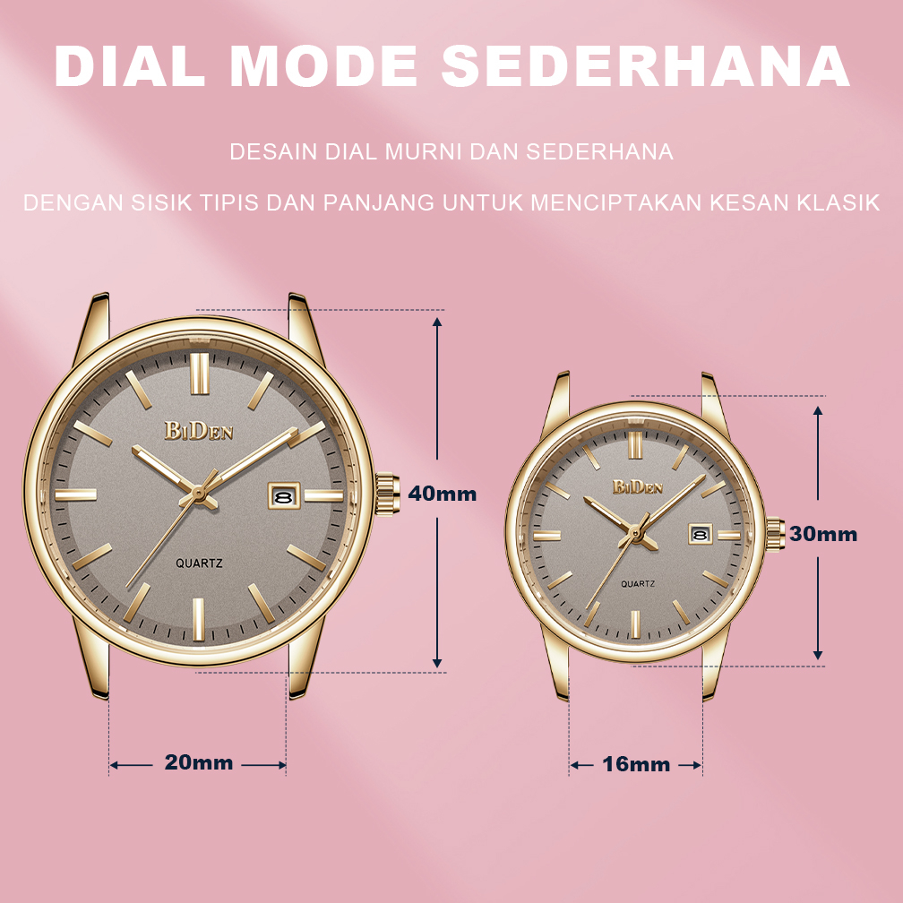 BIDEN Jam Tangan Couple Anti Air Kuarsa Klasik Mode Tali Kulit Jam Pria+Jam Wanita