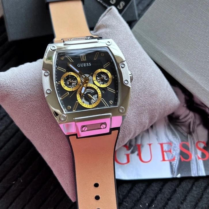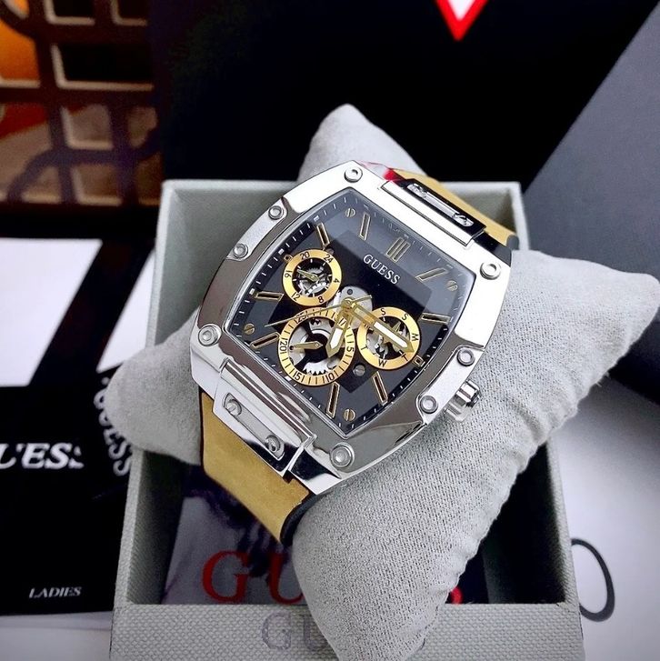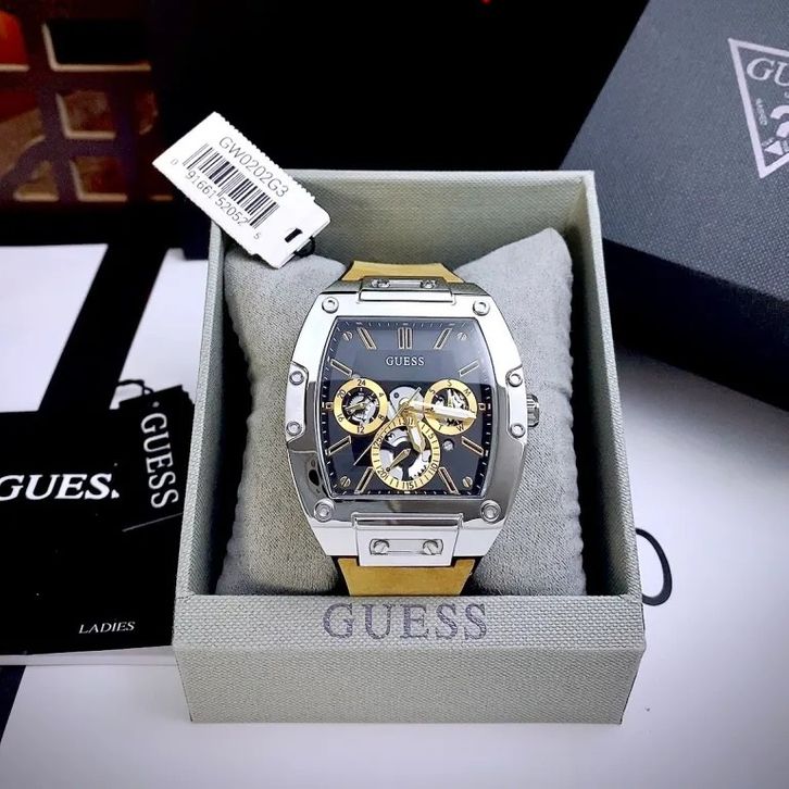 JAM TANGAN PRIA GUESS PHOENIX GW0202G2 SILVER LIGHT BROWN LEATHER FREE ONGKIR - FREE BOX ORIGINAL