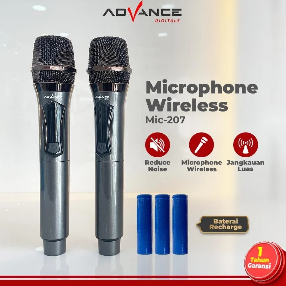 Advance MIC207 Double Mic Bluetooth Karaoke Wireless Microphone Suara Jernih BONUS Baterai Cas 3 Pcs