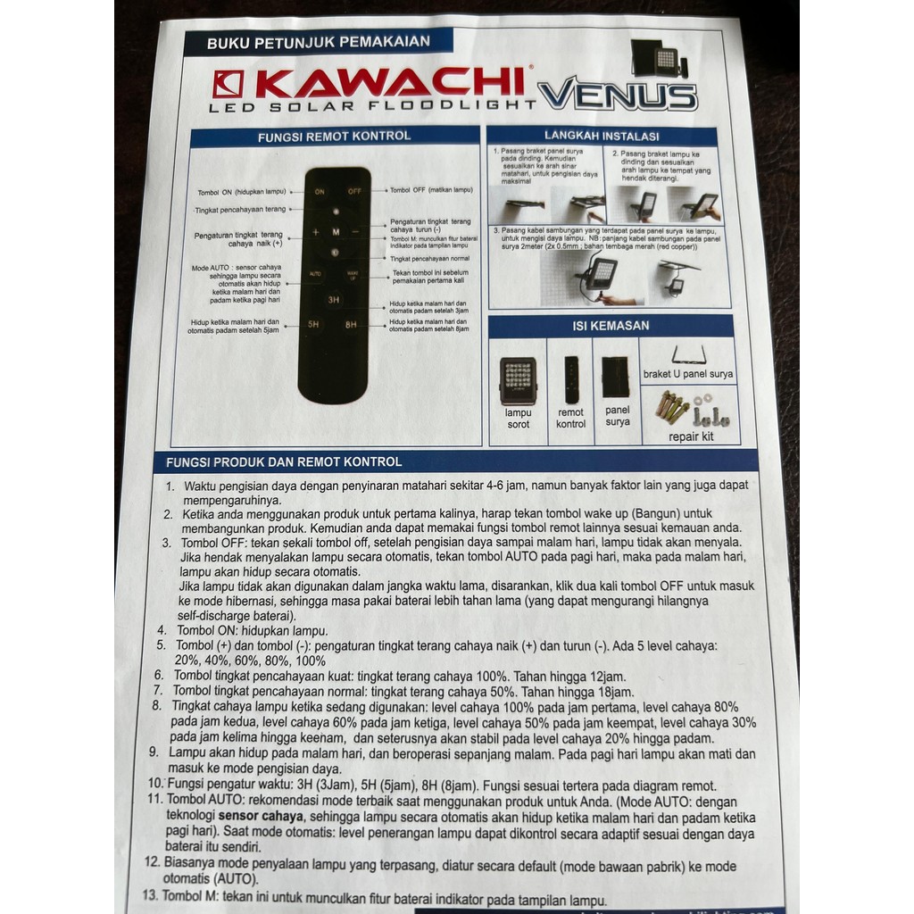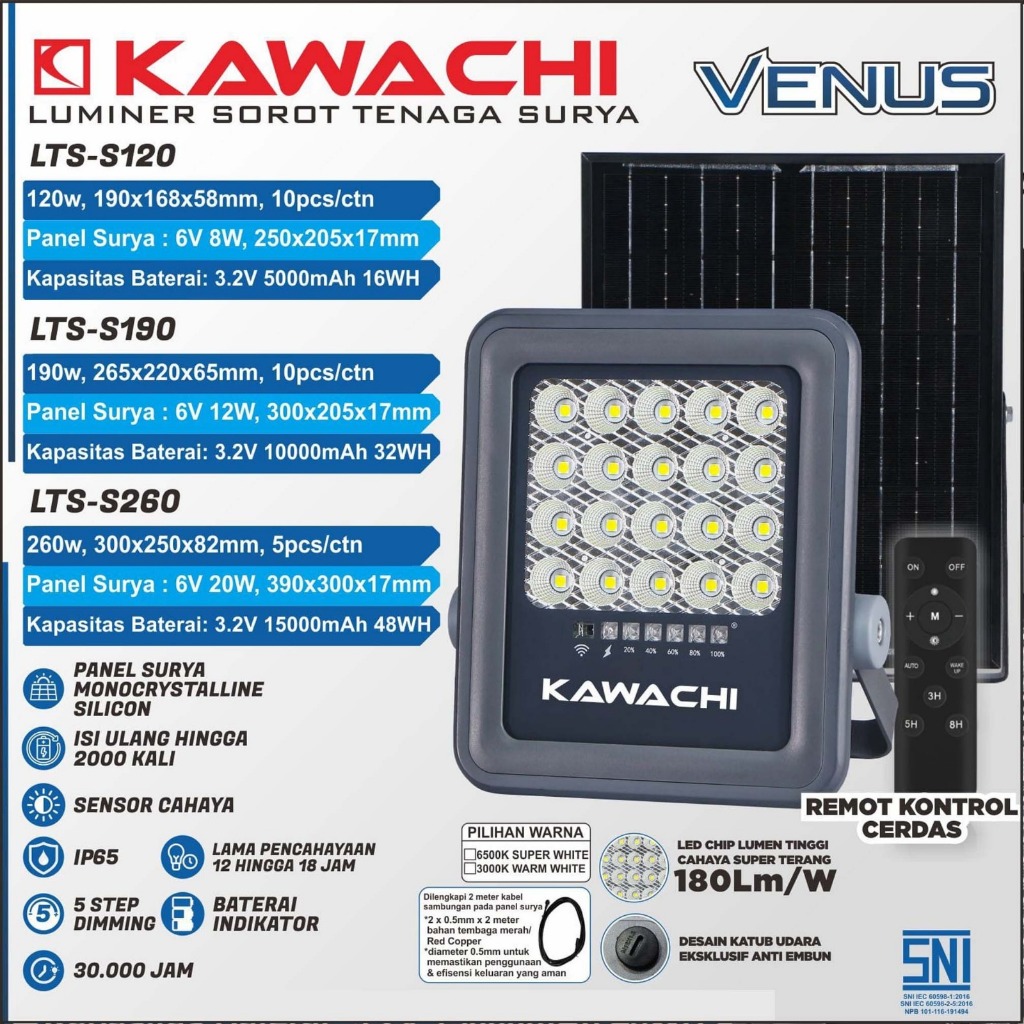 KAWACHI LED SOLAR FLOOD LIGHT LAMPU SOROT TENAGA SURYA LTS S120, S190, S260