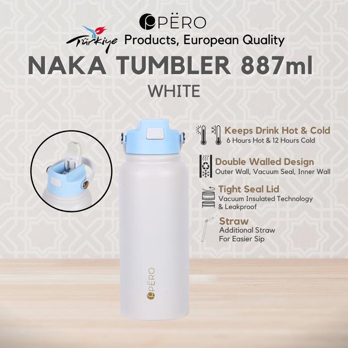 [Jordi Onsu] PRE ORDER - Pero Naka Tumbler 887 ML / Botol Minum Tumbler Vakum 887 ML Anti Panas Dingin 887 ML - White
