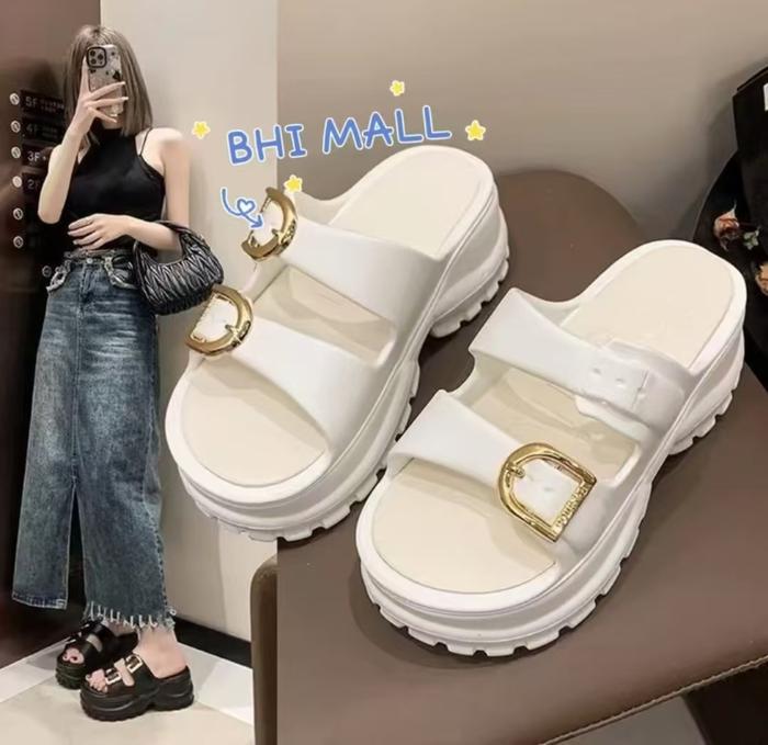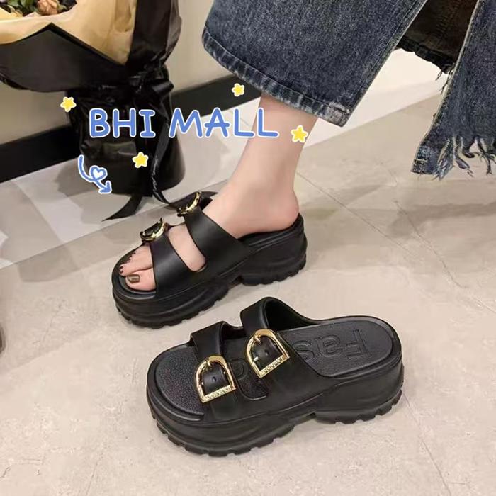 [ASFER]Sandal Wanita Wedges Sendal Selop Tinggi EVA Jelly Karet Kekinian Antislip Empuk Ringan Premium - Hitam 36-37