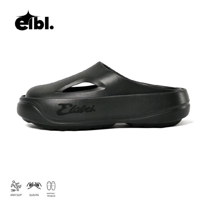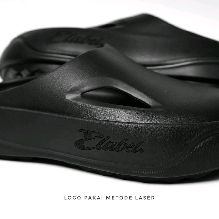 E Label - Zelva Sandal Selop Karet Wanita Sandal Slip On Fashion Wanita Kekinian Anti Slip Sendal Shoes - Hitam 36-37