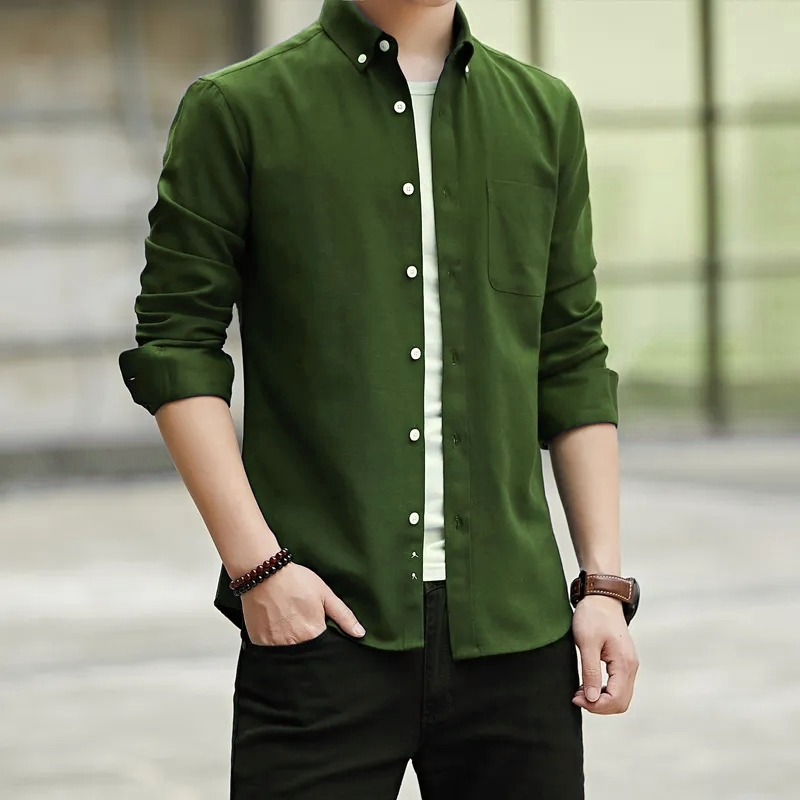 Baju Kemeja Pria Lengan Panjang Polos Sky Blue Hem Biru Langit Bahan Katun Premium
