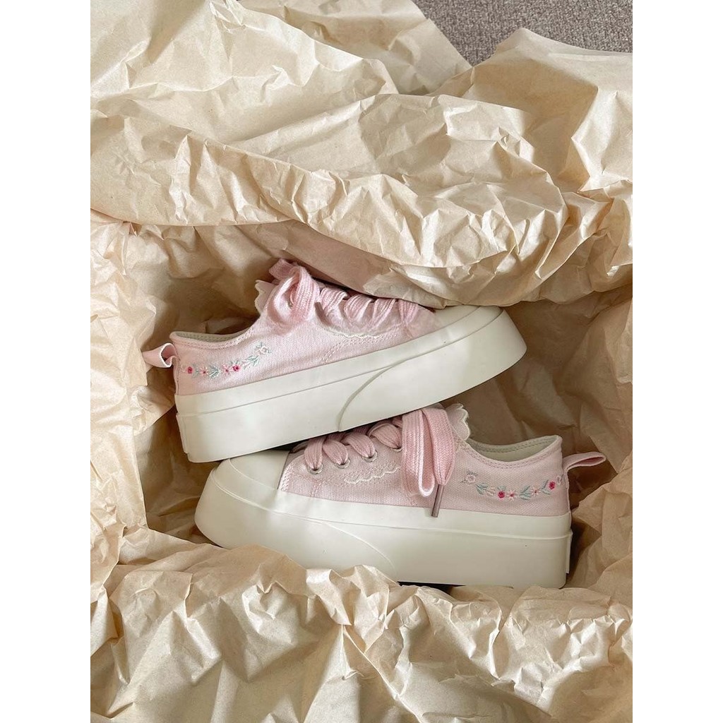 Sepatu Kanvas Tebal Bordir Tren Nasional Desain Tipis Bernapas Sneakers Putih