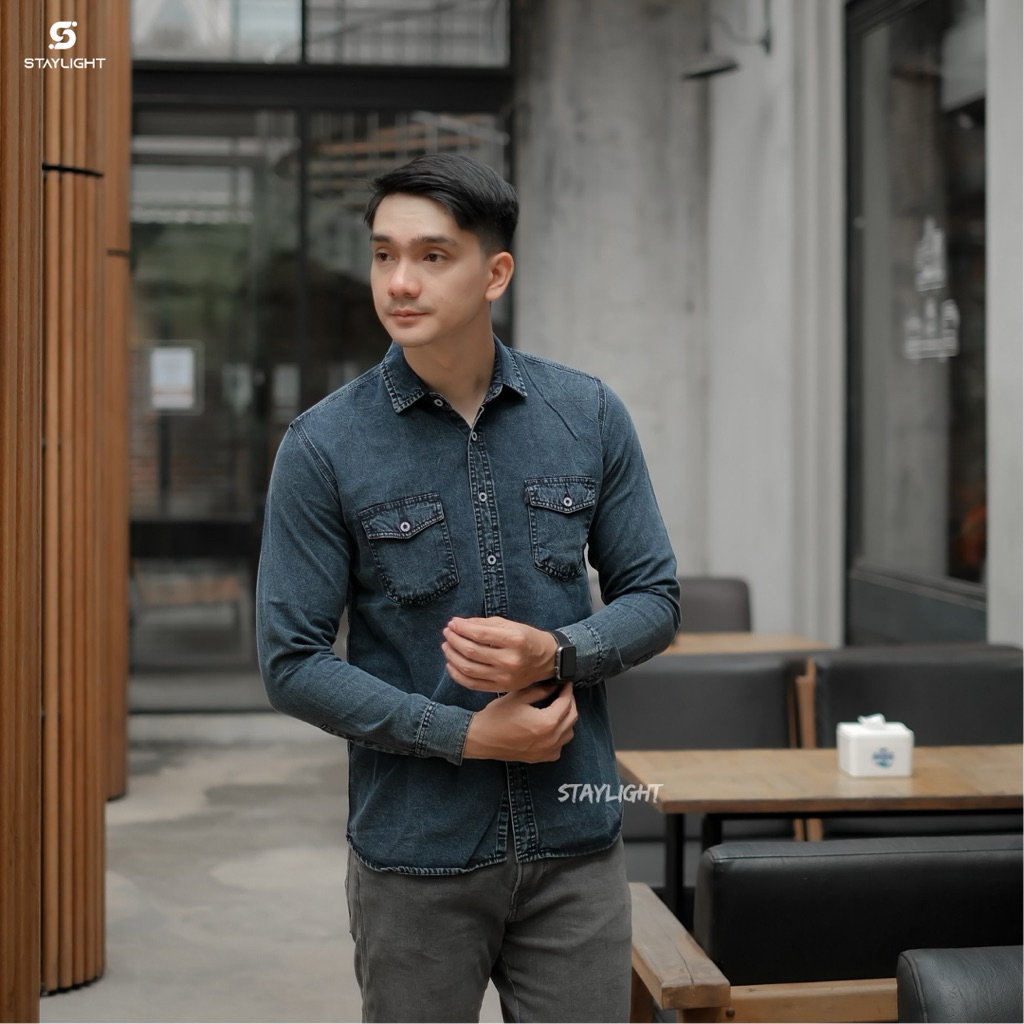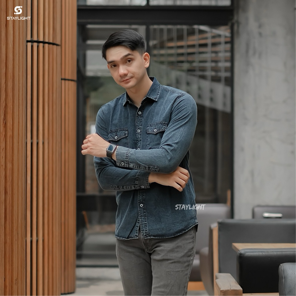 Staylight_ Kemeja Jeans Lengan Panjang Pria Denim Snow