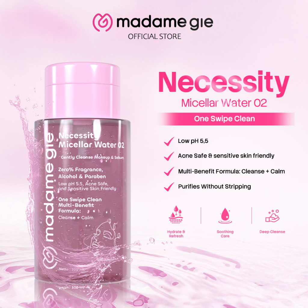 [NEW LAUNCH] Madame Gie Necessity Micellar Water 02 50ML- Makeup Remover Cleanse & Calm | Low pH 5,5 | Pembersih Wajah u
