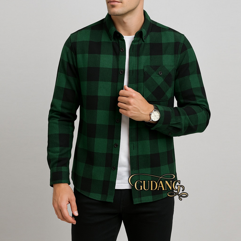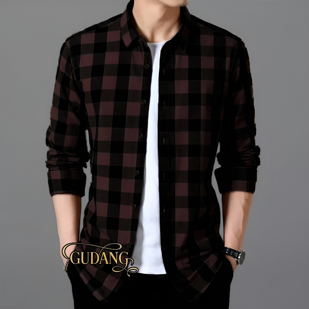Kemeja Flanel Pria Lengan Panjang Motif Kotak Kotak Kualitas Premium Flanel Terbaru Premium