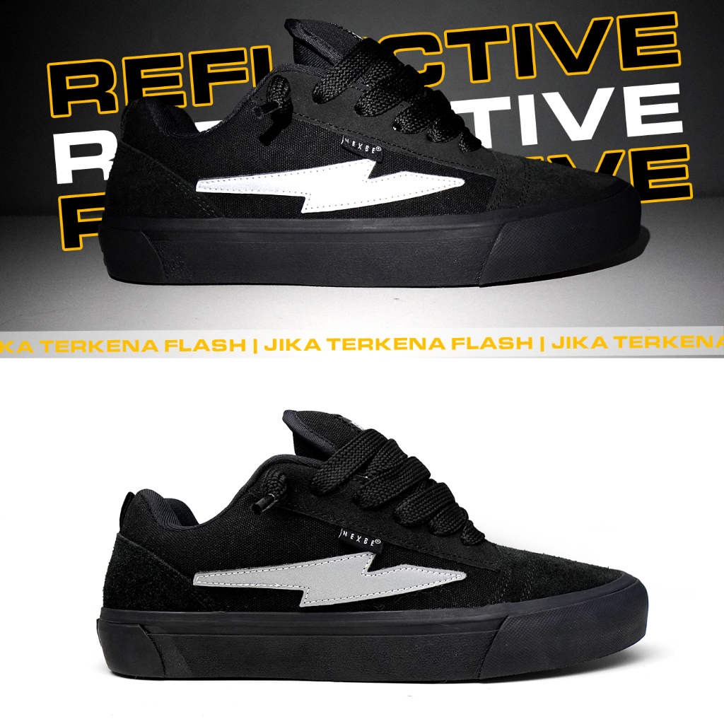 NEXBE - Maximo Full Black Reflective - White Sepatu Gemuk nyala Gendut Pria Wanita