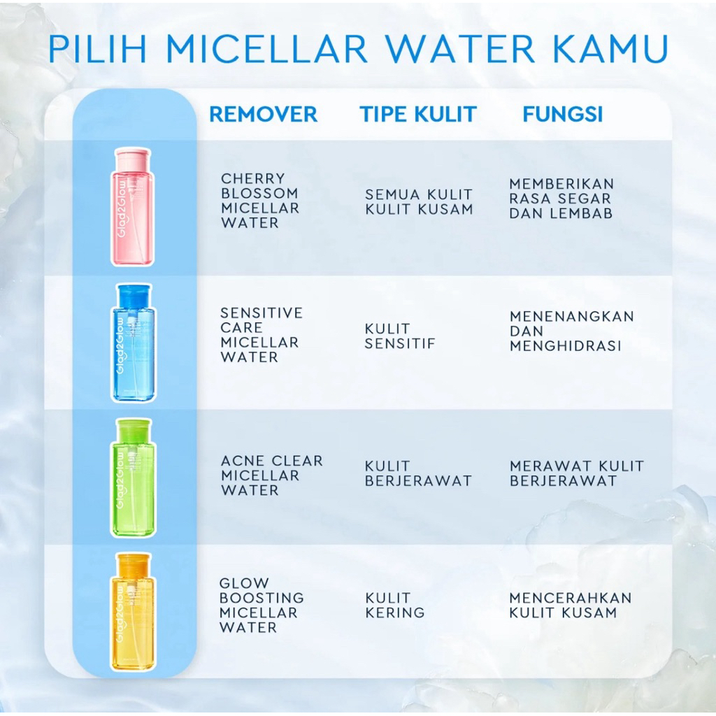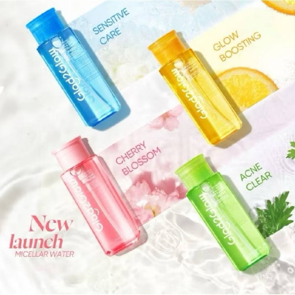 Glad2Glow Micellar Water for All Skin Type 300 ml | Cherry Blossom | Mugwort Acne |Yuja Vit C | Tremella Sensitive | Por