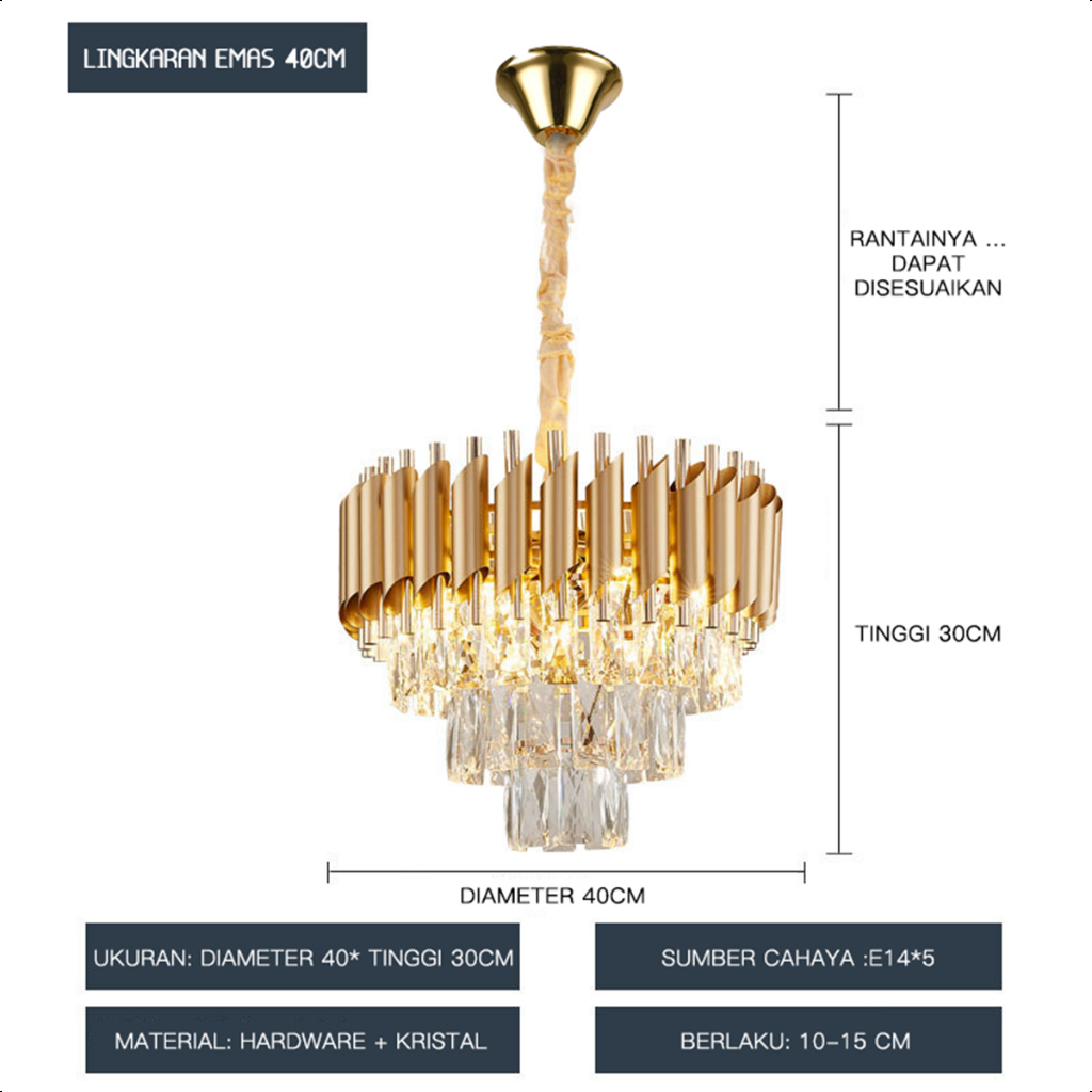 YOGRE lampu kristal mewah ringan ruang tamu dan lampu ruang makan 40, 50CM peredupan tiga warna 3000K lampu ruang tamu bergaya nordik ampu kamar tidur lampu led