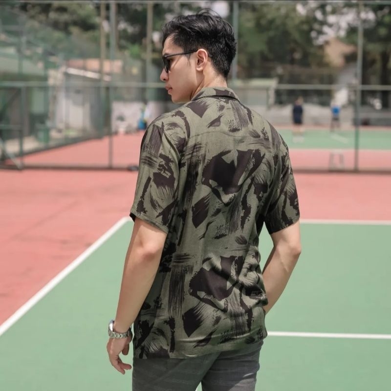 MUST Kemeja Hawai Pria Wanita Motif Printing Abstrak Vintage Casual Shirt Lengan Pendek Retro