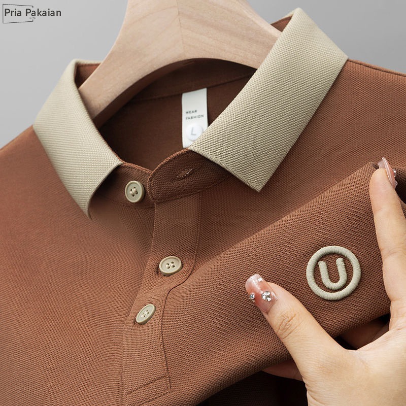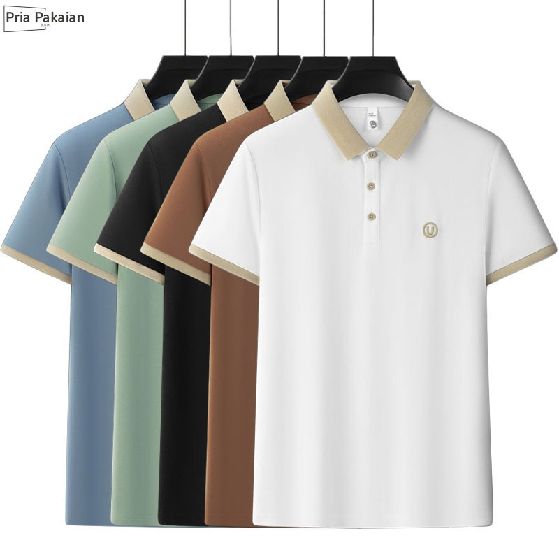 Kaos Kerah Pria Knit Shirt Lengan Pendek V Neck Polo Shirt kaos polos kancing Atasan Pria Lengan Pendek baju Kaos Polo Pria Kerah