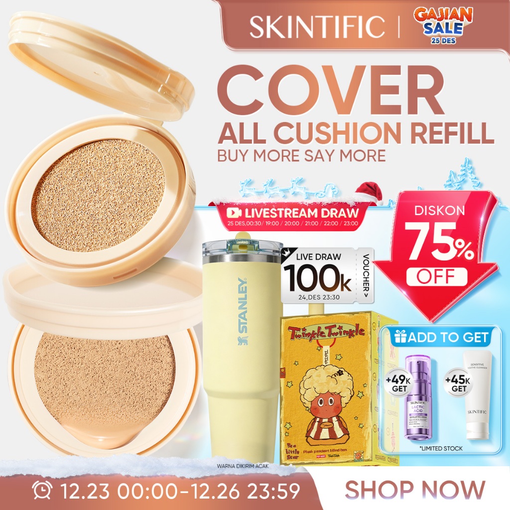 SKINTIFIC - Refill -Cover All Perfect Cushion 11ml | Skin Tint Foundation Make Up BB Cream Kosmetik Refill UV SPF 35 PA++++Sunscreen Bedak Padat