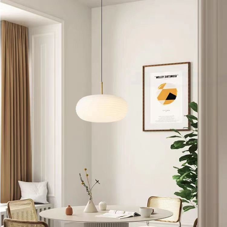 Lampu Gantung Ruang Makan Krim Kreatif Lampu Kamar Tidur Modern Minimalis Berwarna Putih Hangat Lampu LED Ruang Makan Bulat Nordic
