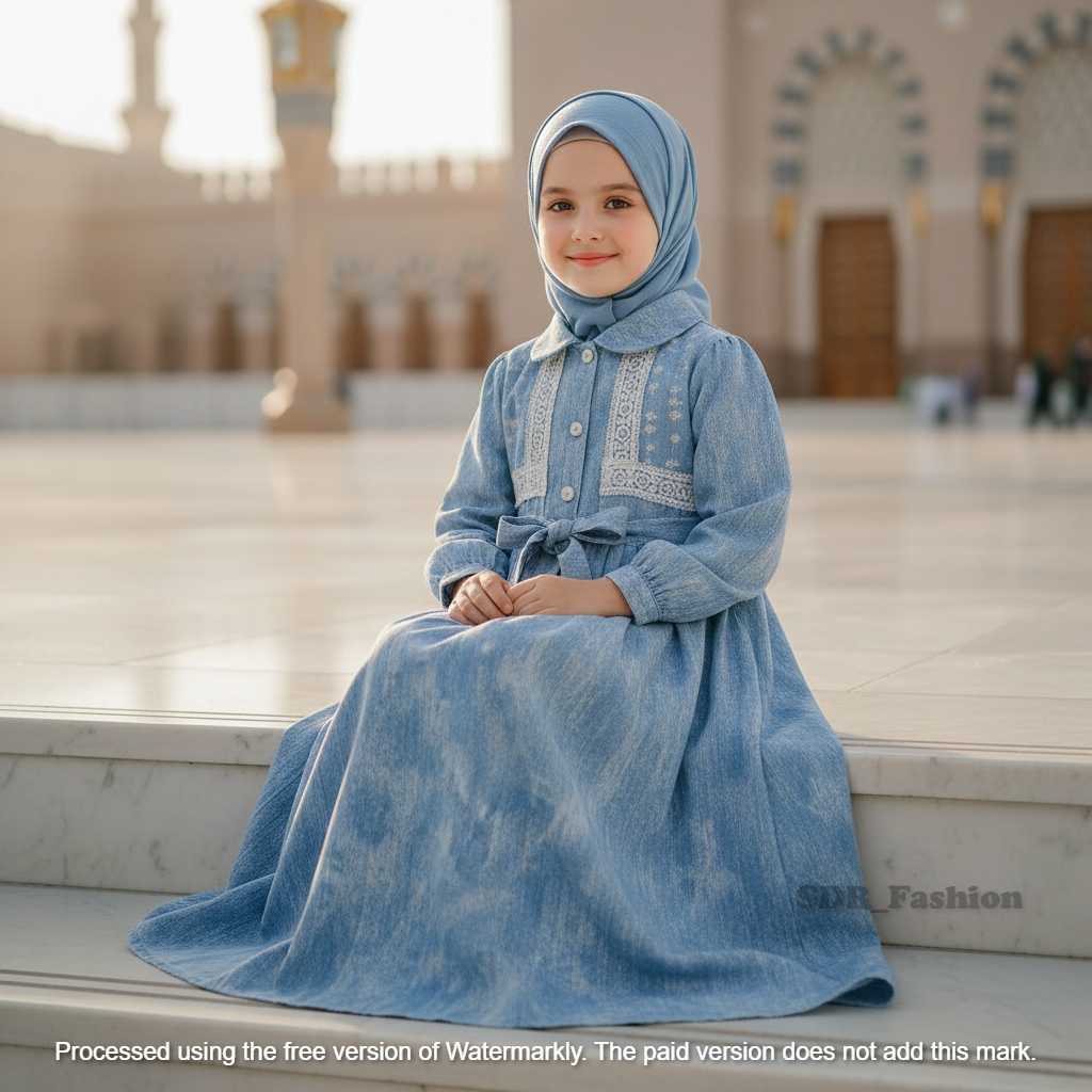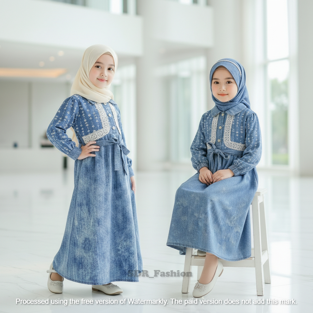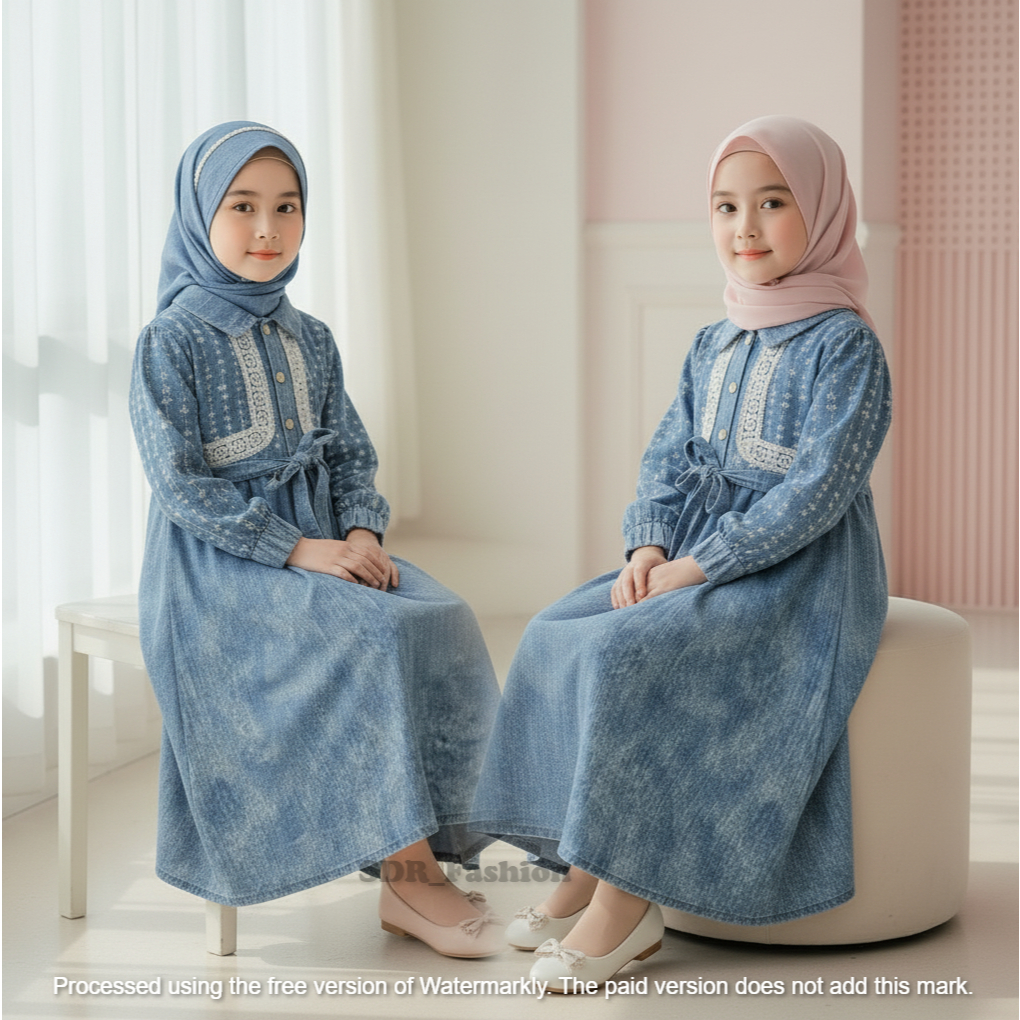 Gamis Anak Perempuan Gamis Anak Denim Renda Tampil modis & nyaman dengan dress panjang look jeans kekinian usia 1-12