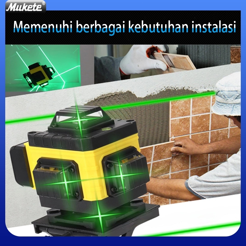 Mukete laser level laser waterpass 4D 16Lines/12Lines Adjustable 360°4 in 1 Alat Tukang Bangunan