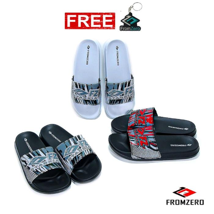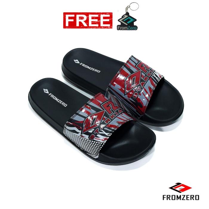 Fromzero - Sandal Selop Pria Wanita Sandal Slide Starkia Black White 36-43 - HITAM MERAH 36