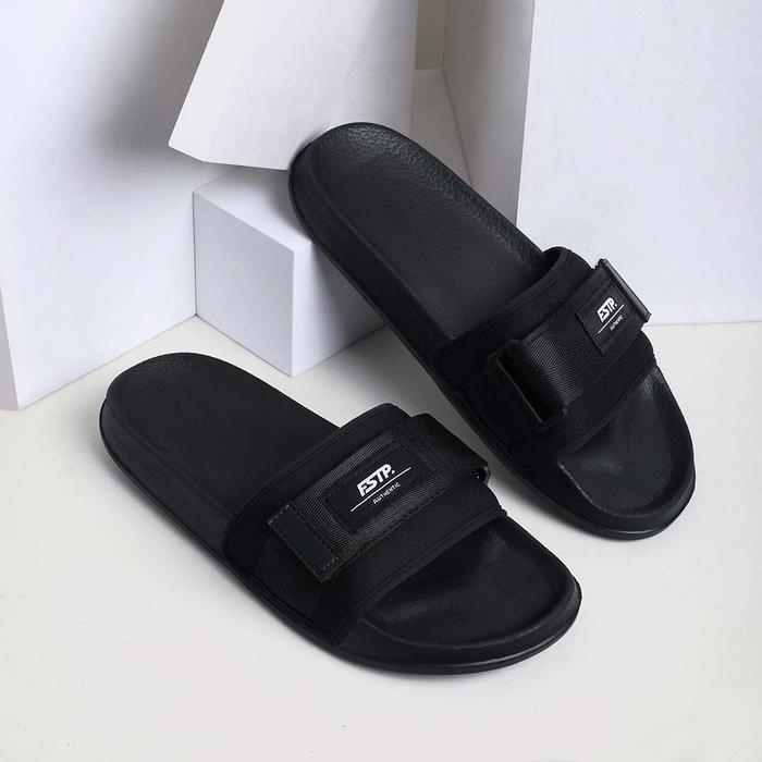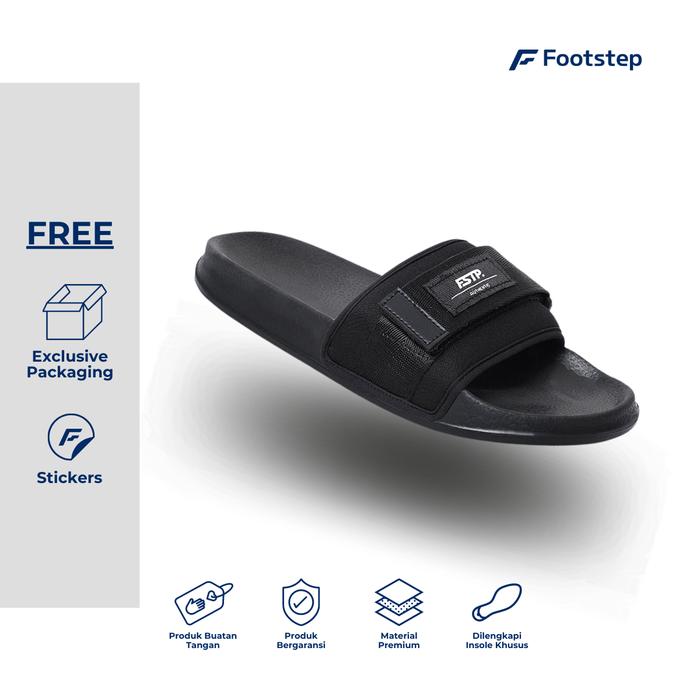 Sendal Cowok Footstep Volta Black Slide Sandal Shoes Pria Selop - Black 39