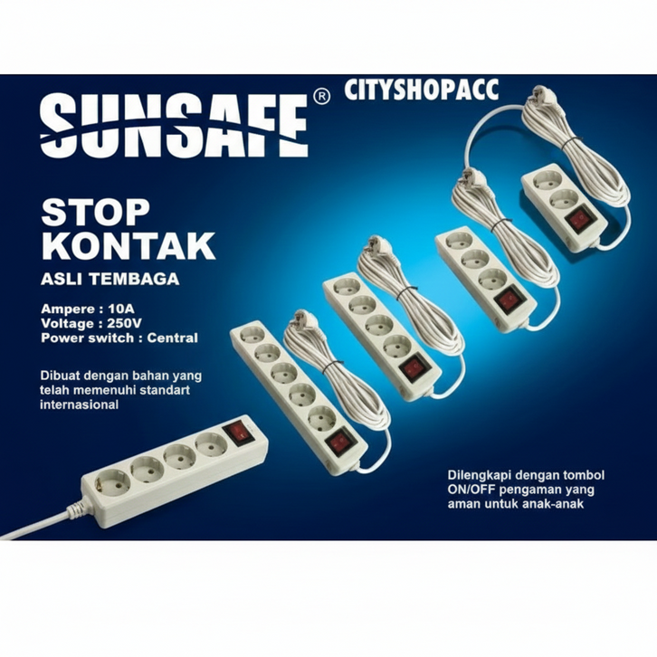 Stop kontak kabel SUNSAFE Panjang 1,5M 3M 5M Stop Kontak Sunsafe 1,5 Meter 3 Meter 5 Meter 2 3 4 5 Lubang