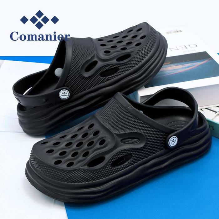 Comanier Sandal Slip On Pria Dewasa Ori 2023 Sandal Selop Empuk Cowo Karet Sepatu Viral Terbaru No.323 - Hitam 40