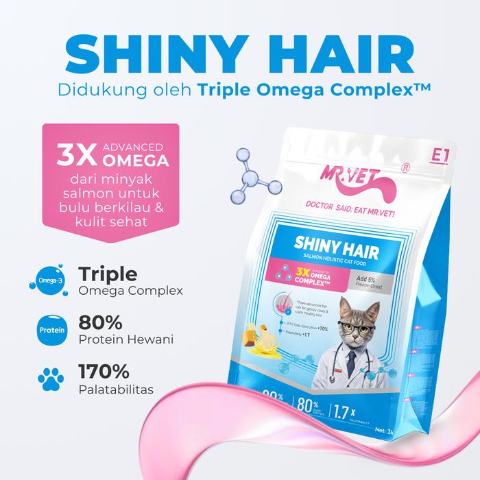 Mr. Vet - Makanan Kucing Kering Mr.Vet E1 1kg. E2 1kg dan E3 1kg catfood - E1 SHINY HAIR