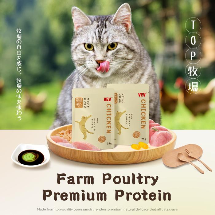 VEV-Pouch Box 12 pcs x 75gr All Life Stage Makanan Basah Kucing Produksi teknologi Jepang - Chicken 75g*12