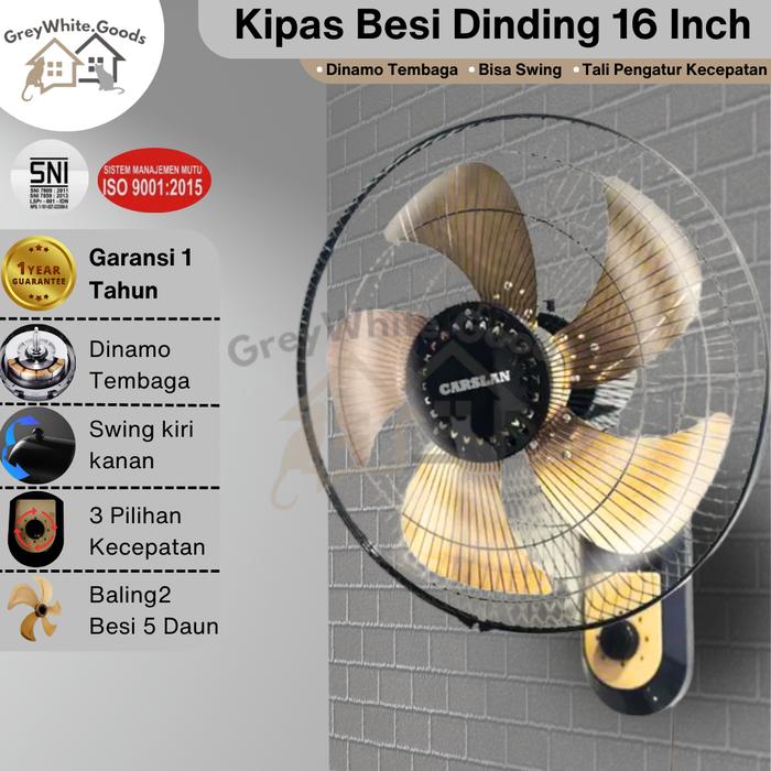 Kipas Dinding Besi Tornado JUMBO 16 Inch Alumunium Emas Timer Kuningan Bergaransi - 16 Inch 5 Daun Besi