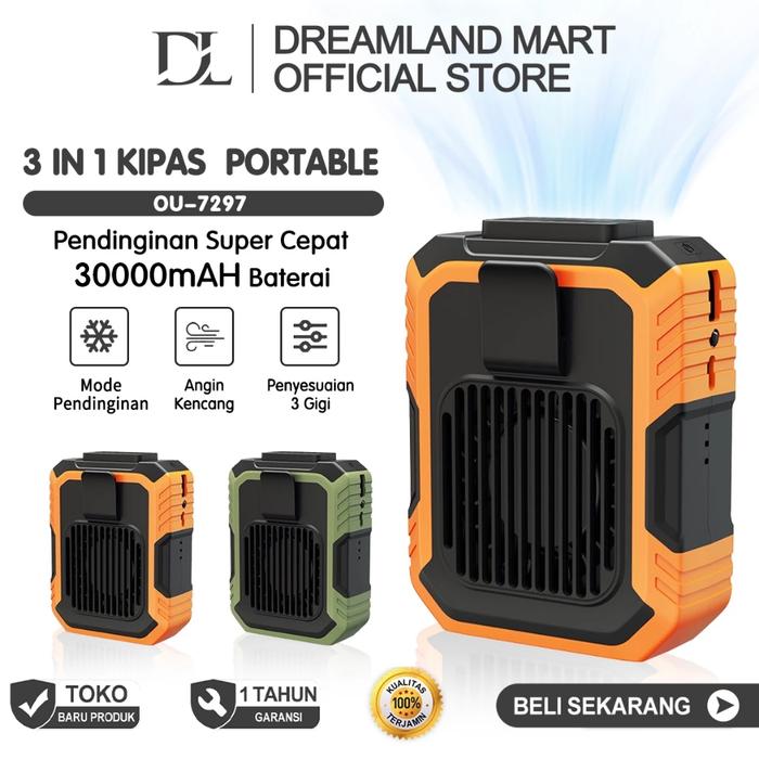 DL Kipas Angin Portable Kapasitas Besar Mini Fans 3 kecepatan Bisa gantung di pinggang Hijau - Oranye
