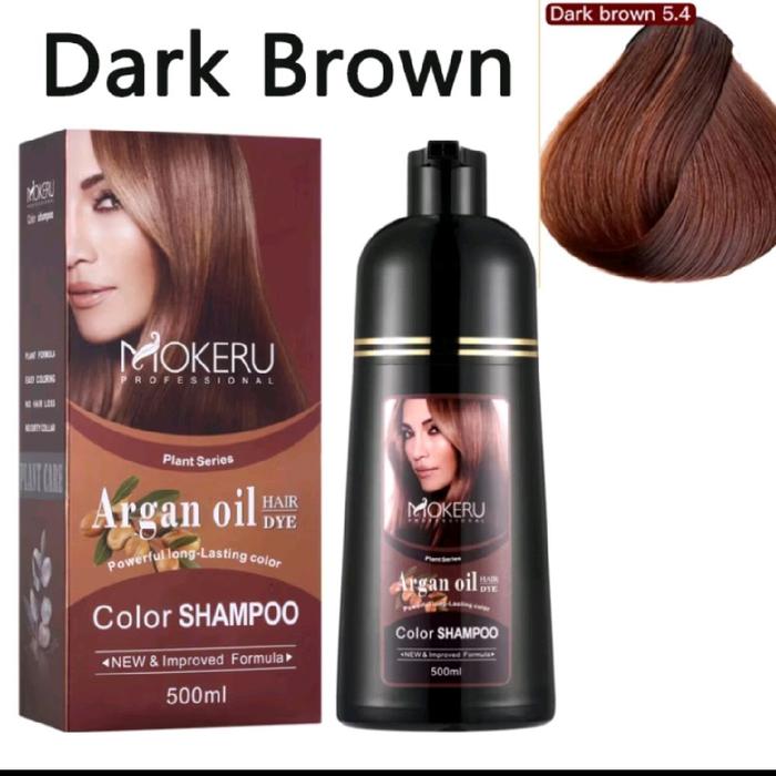 100% Shampoo Semir Pewarna Rambut Alami Mokeru Herbal Bahan Argan Oll - dark brown