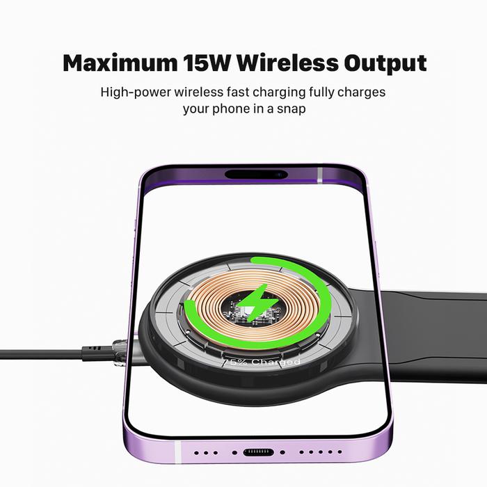 KiiP Wireless MCH05 Pro 2in1 Wireless Charger Car Phone Holder Dashboard Iron Magsafe Foldable Aksesoris - Hitam