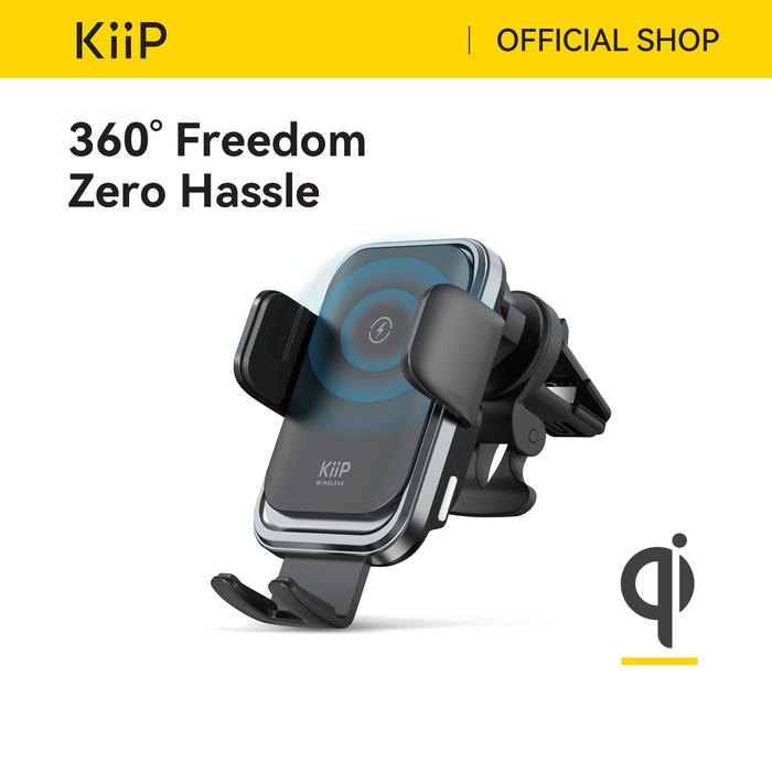 KiiP Wireless X6S Car Phone Holder 360 Degree Rotation 15W Fast Charging Air Vent Mobil - Hitam