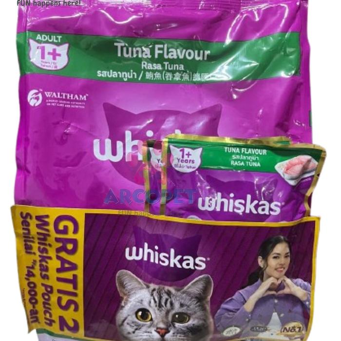 Whiskas Adult Tuna 12 Kg Makanan Kering Kucing - Whiskas Adult 1.2 Kg + 2 pouch