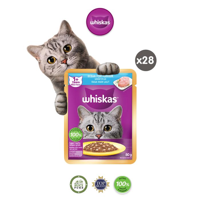 Whiskas Makanan Kucing Basah Pouch 80 gr - Isi 28 Wet Food - Ocean Fish