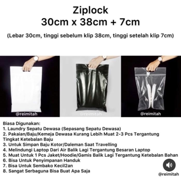 Isi 100pcs Plastik Ziplock Plastik Packing 30x38cm Plastik Zip CTIK Plastik Baju Plastik Laundry Sepatu - Hitam