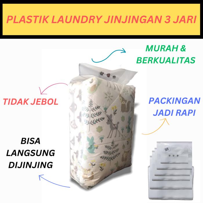 Plastik Jinjing 3 jari Laundry/ Kantong Plastik Laundry/Loundry Jinjing Laundy bag HD Laundry Jinjing - Plastik 3jari 30
