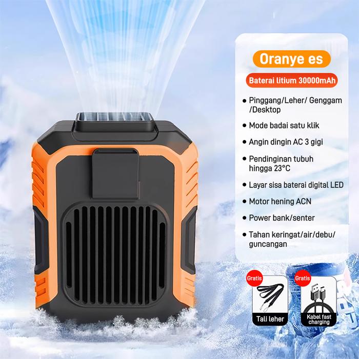 DL Kipas Angin Portable Kapasitas Besar Mini Fans 3 kecepatan Bisa gantung di pinggang Hijau - Oranye