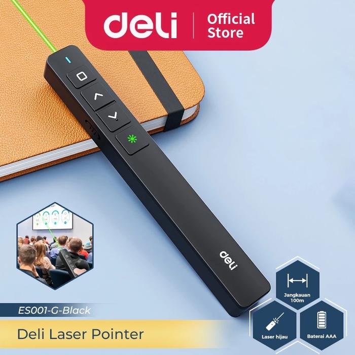 Deli Laser Pointer Presenter Wireless USB Pen Sinar Hijau Jarak 100 M ES001-G