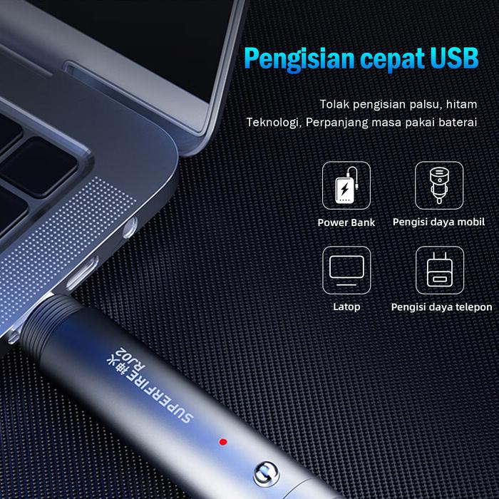 SuperFire Laser Pointer USB Rechargeable Senter 77G Portabel Aluminium Alloy Green Light Torch J02