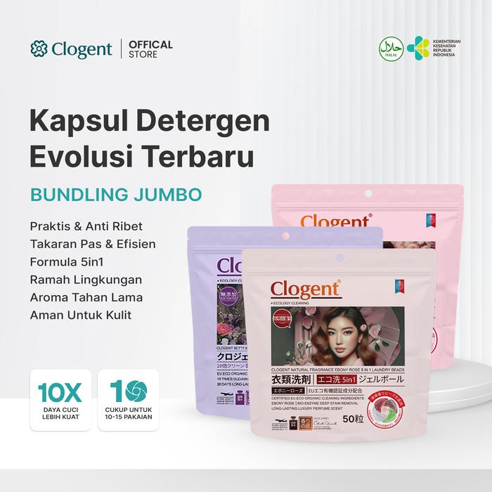 【5-in-1 50 PCS】Clogent Laundry 5-in-1 Dengan 10x Kekuatan Antibakteri Wangi Tahan Lama - Mix Hemat (3 Pack)