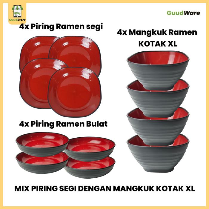 (PAKET 1 LUSIN) PAKET RAMEN PIRING MIX DENGAN MANGKUK KOTAK XL Dapur - Mix piring SEGI kotak xl