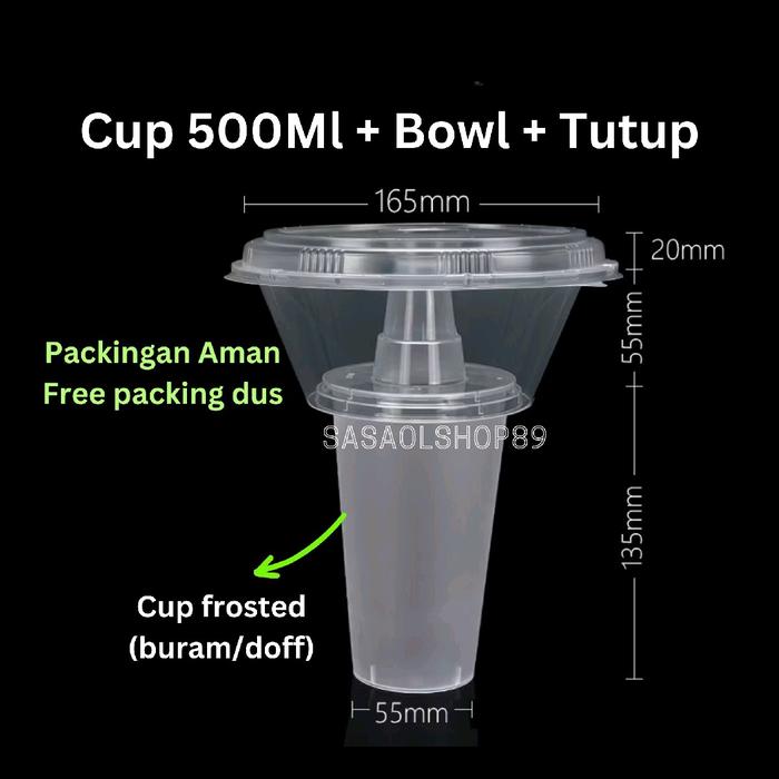 Cup SNACK TRAY BOWL (10PCS) Mangkok + cup cup injeksi Gelas plastik thinwall - 500ML+BOWL+BUBBLE
