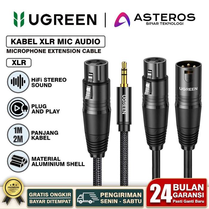 UGREEN Kabel Microphone XLR Hifi Female To Jack 3.5mm Male Kabel Mic Karaoke Audio - XLR Male to Female 1 Meter