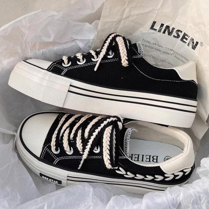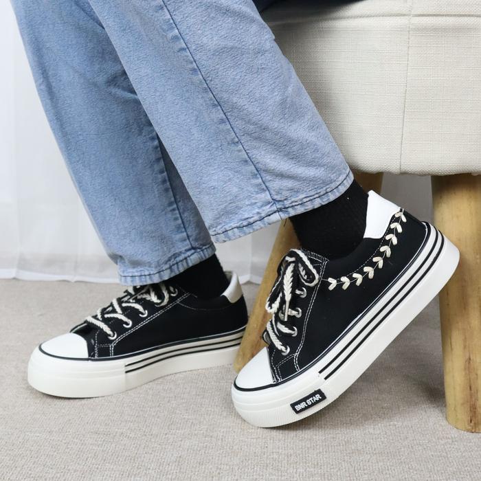 GSI Qeysha Sepatu Sneakers Wanita Kasual Kanvas 1289 Casual Shoes Canvas Sekolah Hitam Karet - BLACK 37
