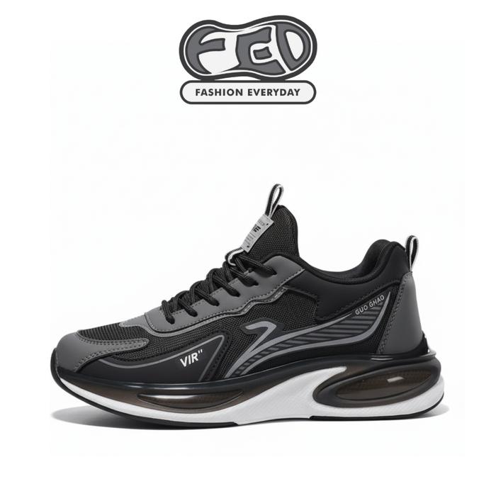 Sepatu Kasual Sporty Running Sneakers Ringan Olahraga Pria Nigata BLACK Hitam Kasual Casual Shoes - BLACK 39