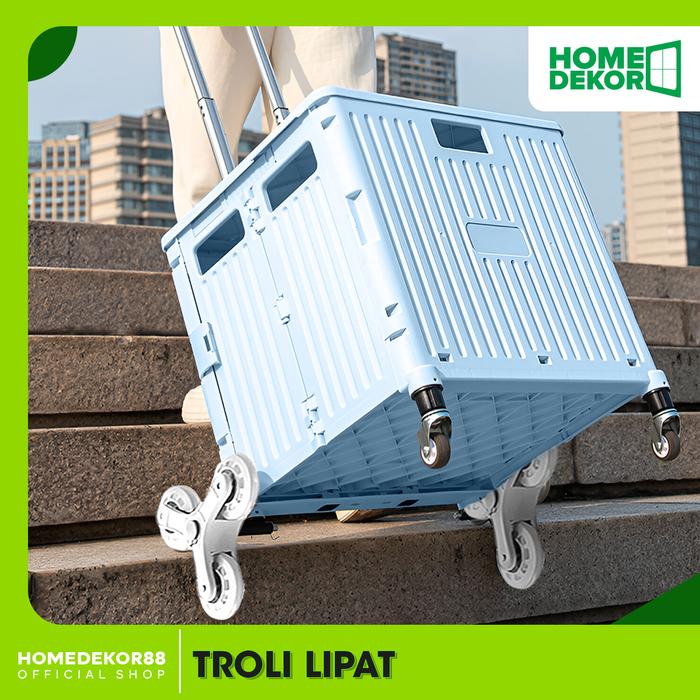 HOMEDEKOR Troli Barang Lipat Praktis Dengan Desain Ergonomis Dan Roda Segitiga Untuk Menaiki Tangga - BIRU