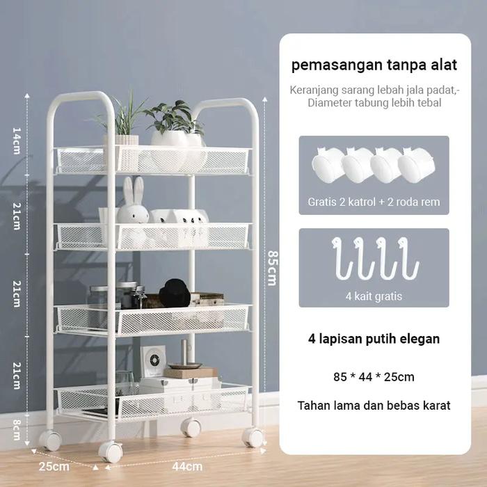 Mehaa Troli Besi Empat Susun dengan Rak Penyimpanan Kualitas Kredibel untuk Kebutuhan dan Peralatan Sehari-hari - White