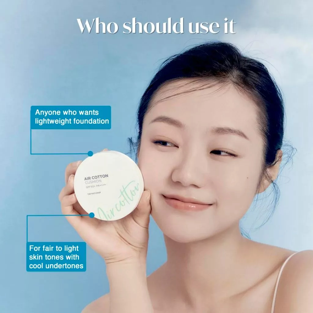 THE FACE SHOP Air Cotton Cushion with SPF 50+ PA++++ 9,5g (3 Variants) - Alas Bedak Hasil Matte